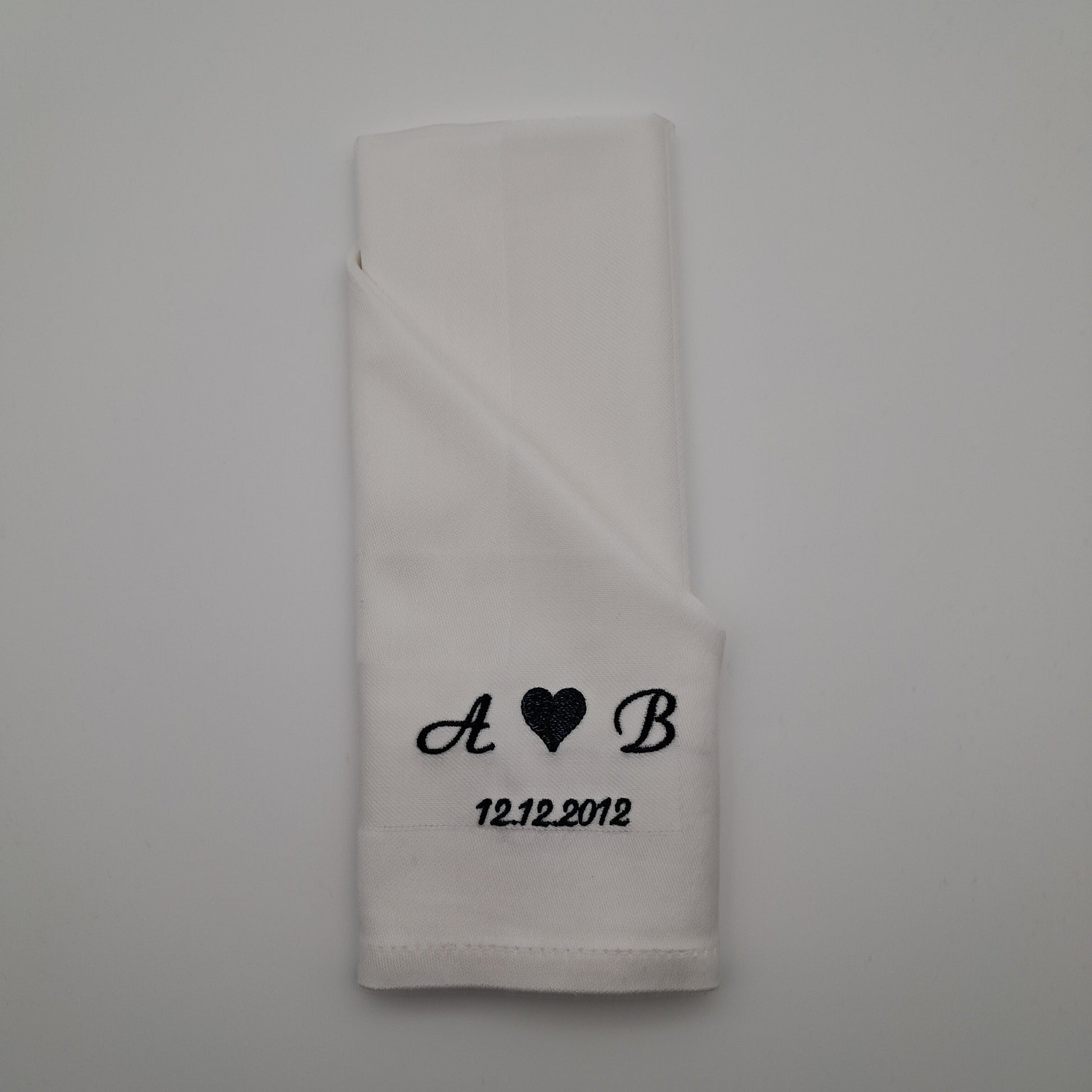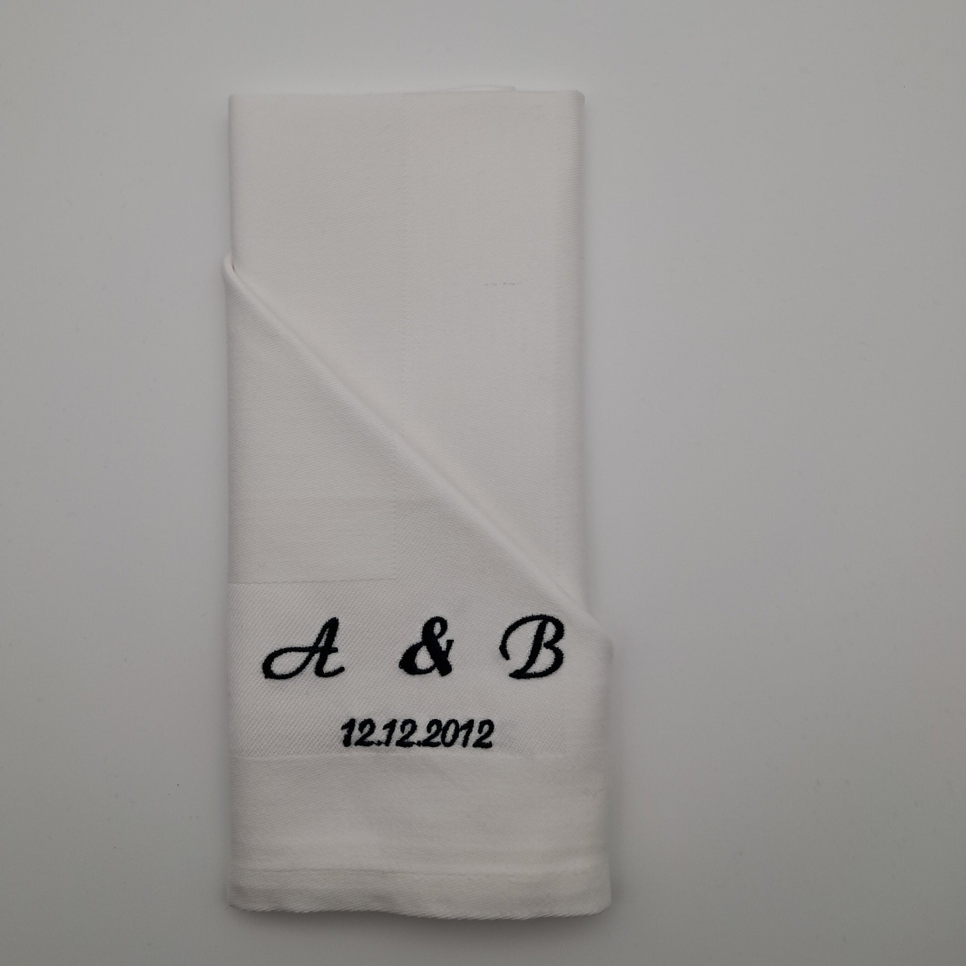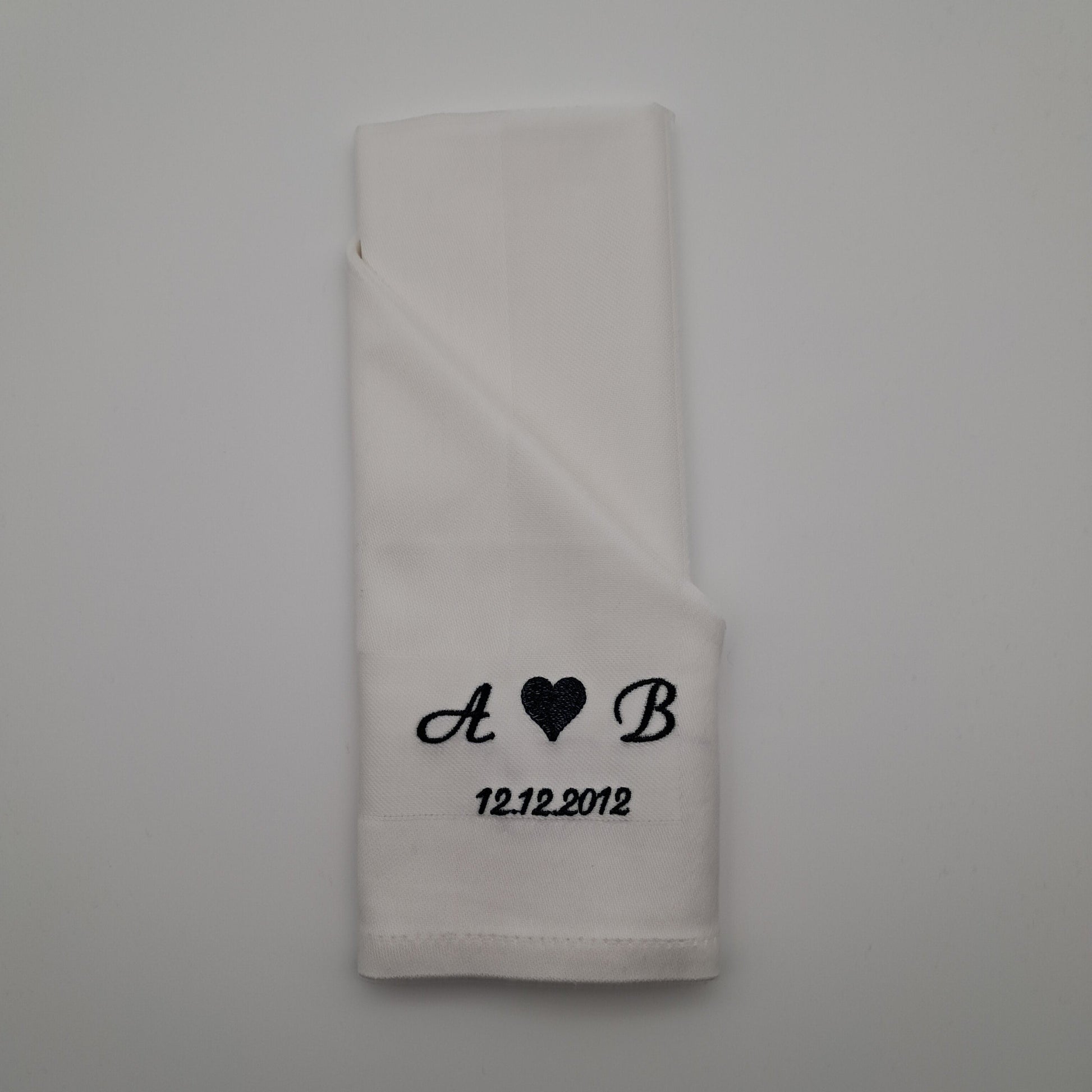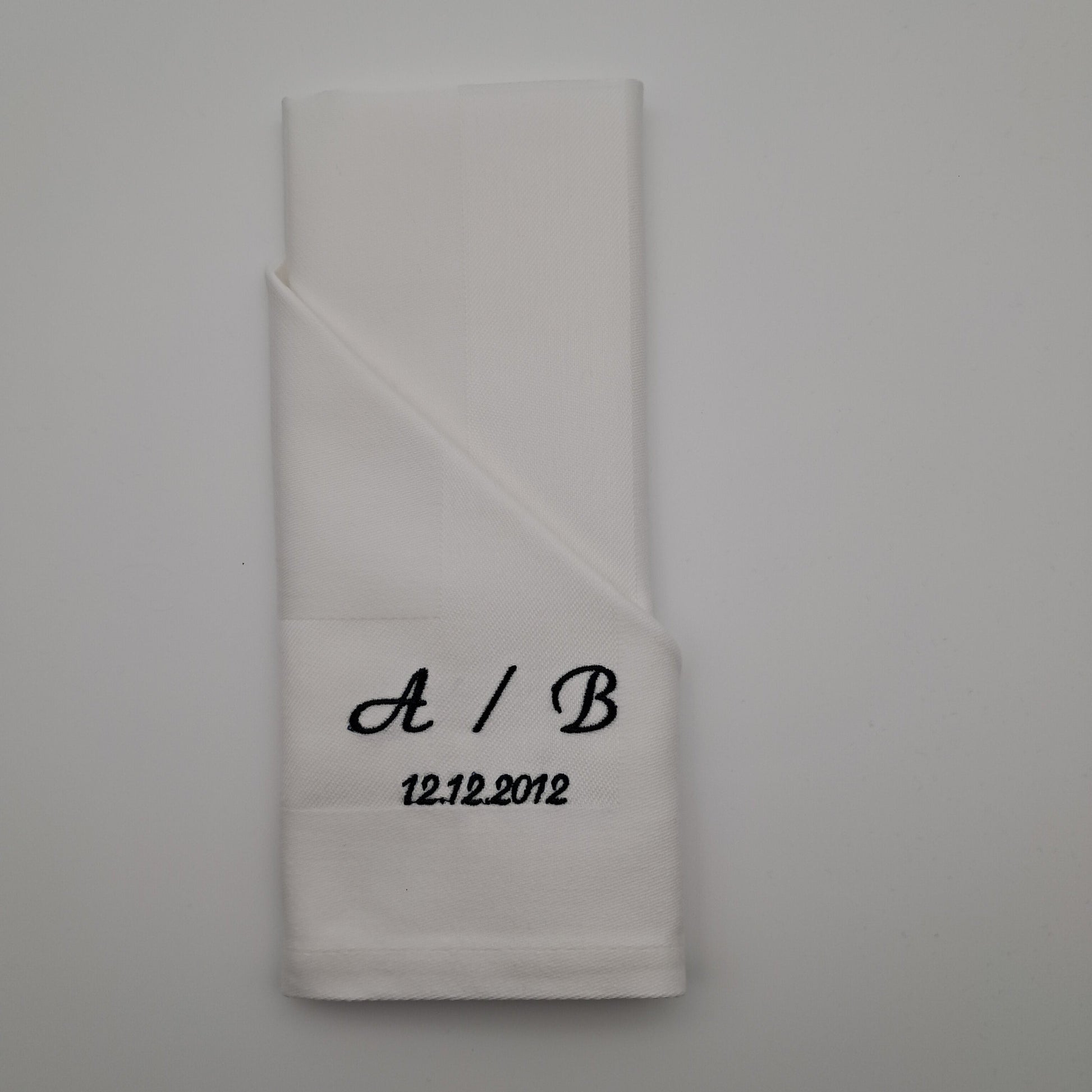 Bestickte Servietten mit Initialen und Datum