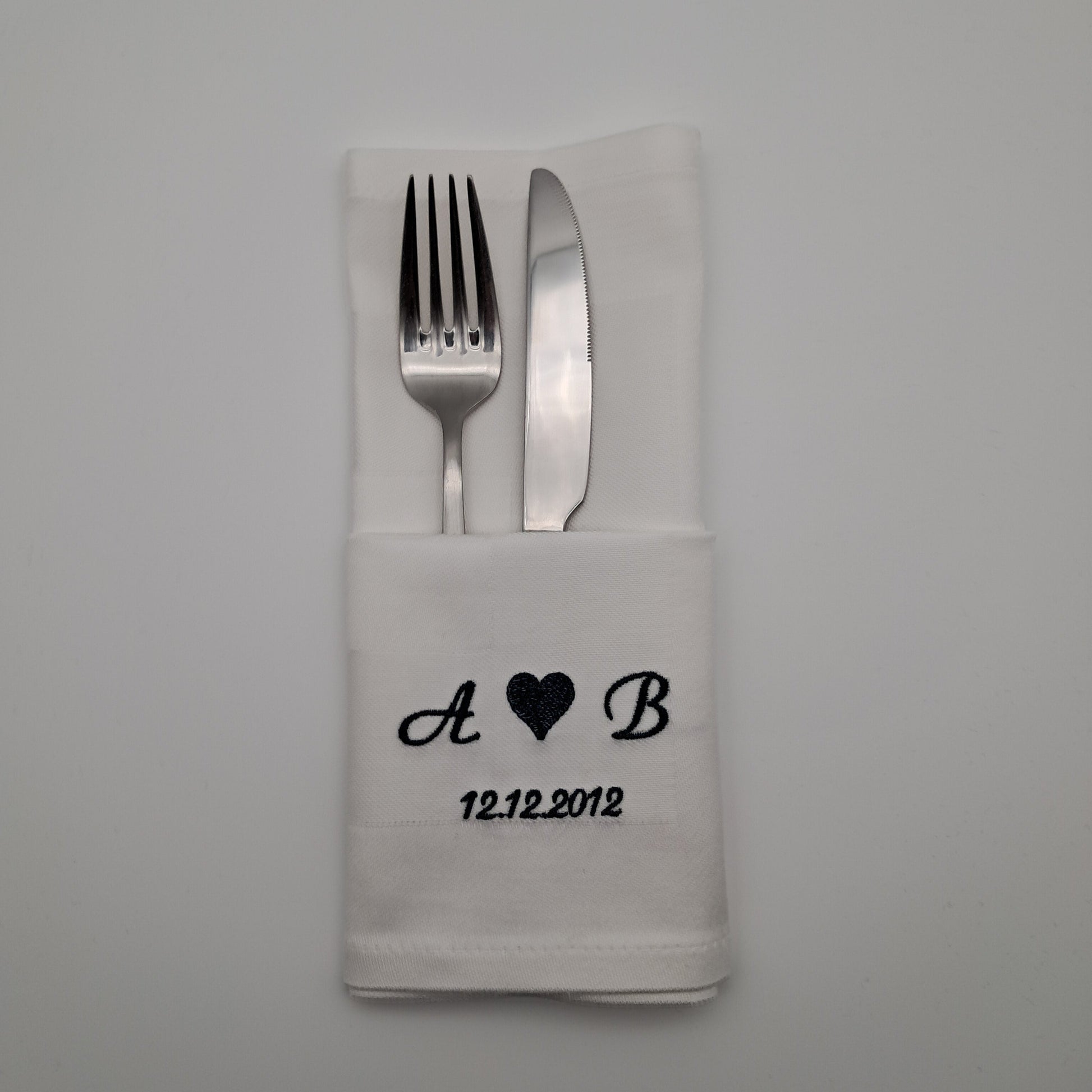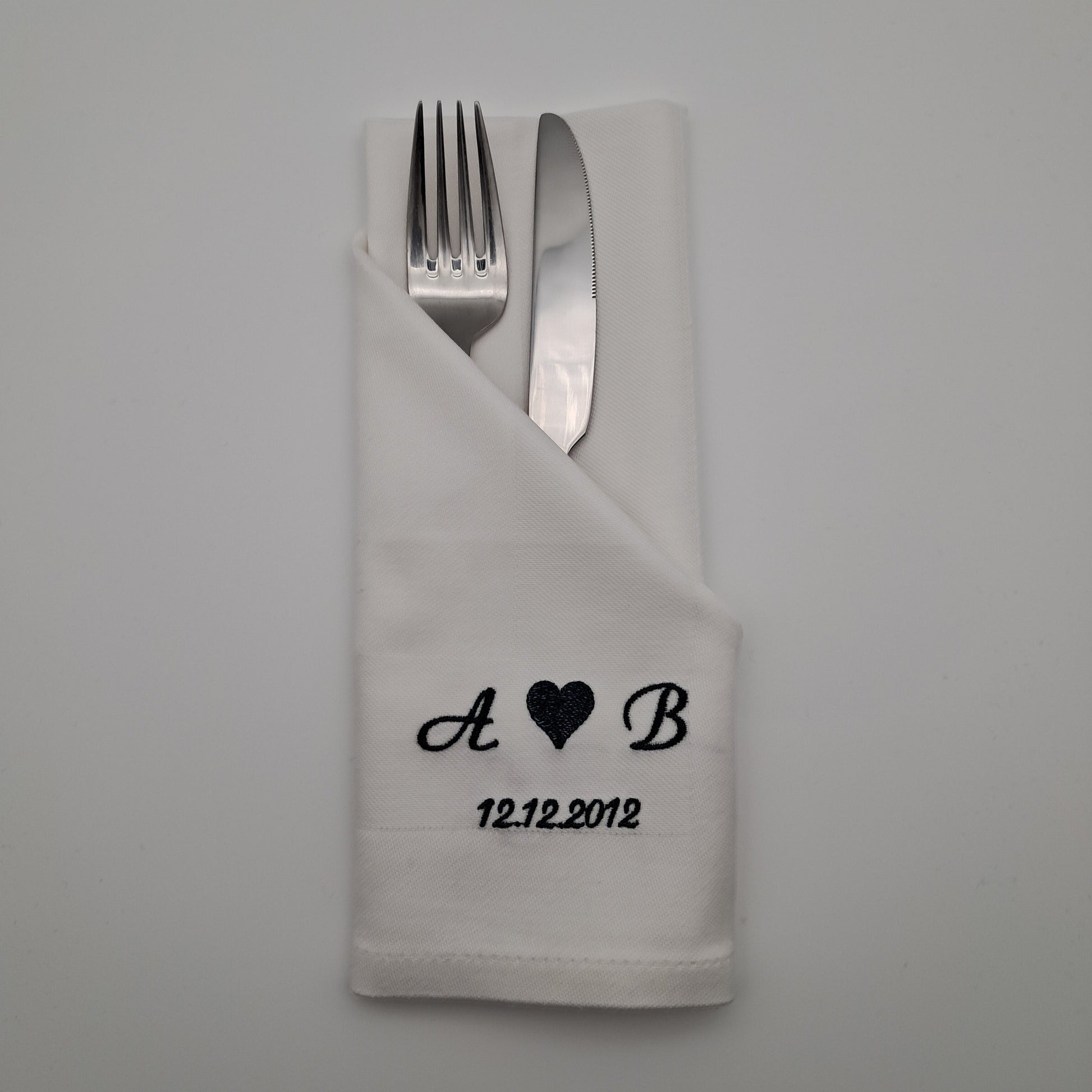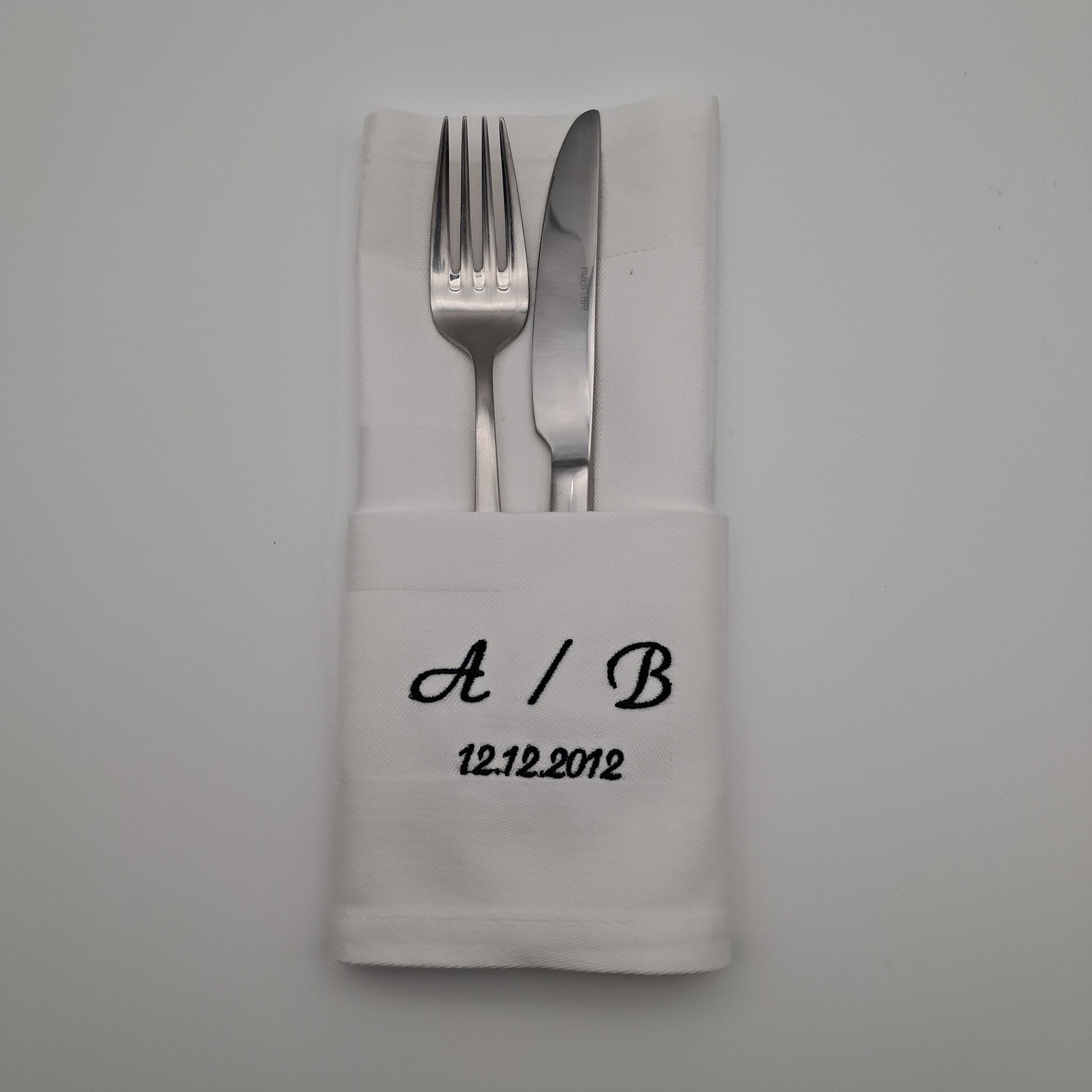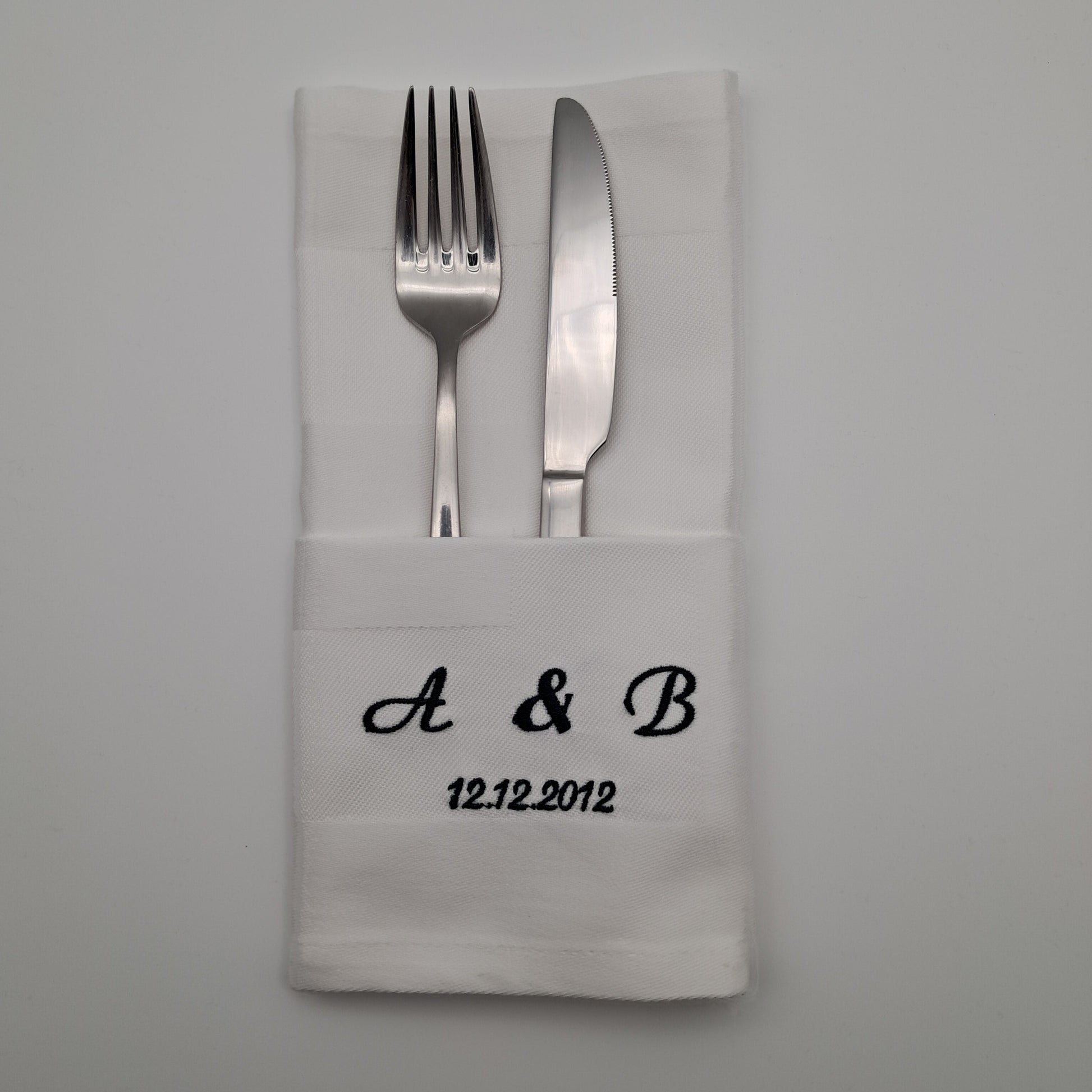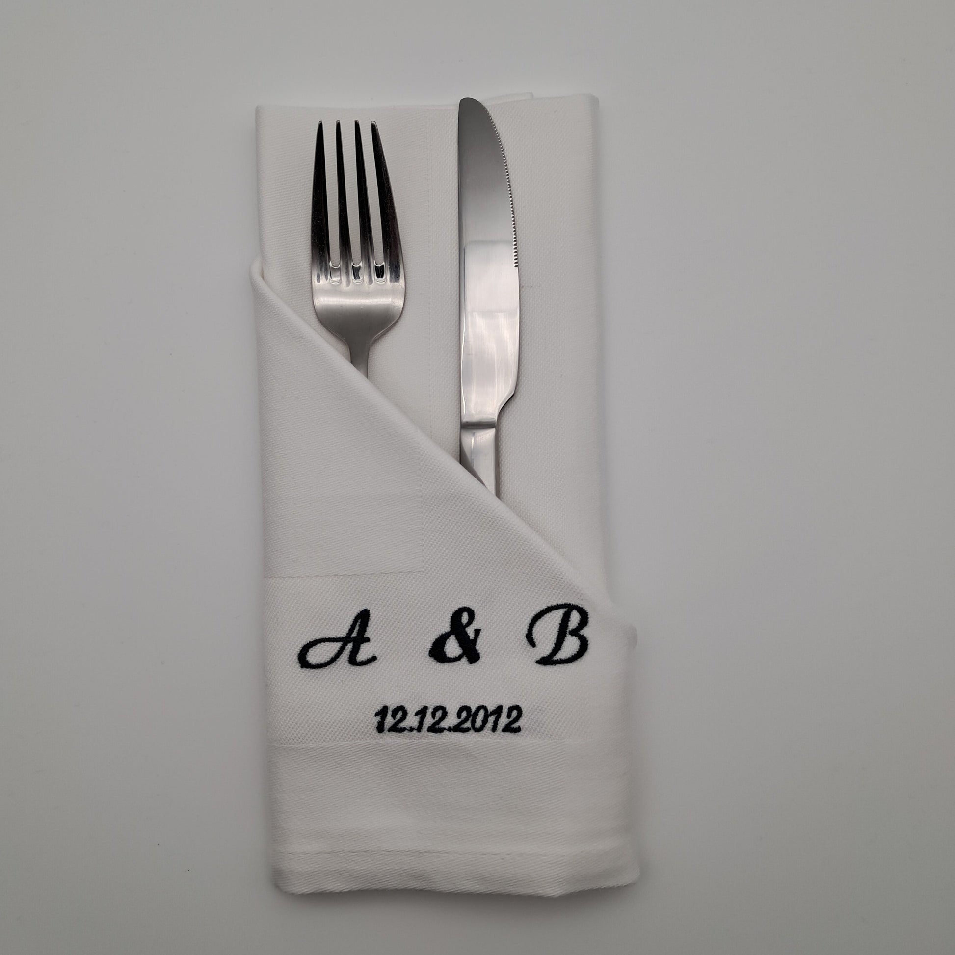 Bestickte Servietten mit Initialen und Datum