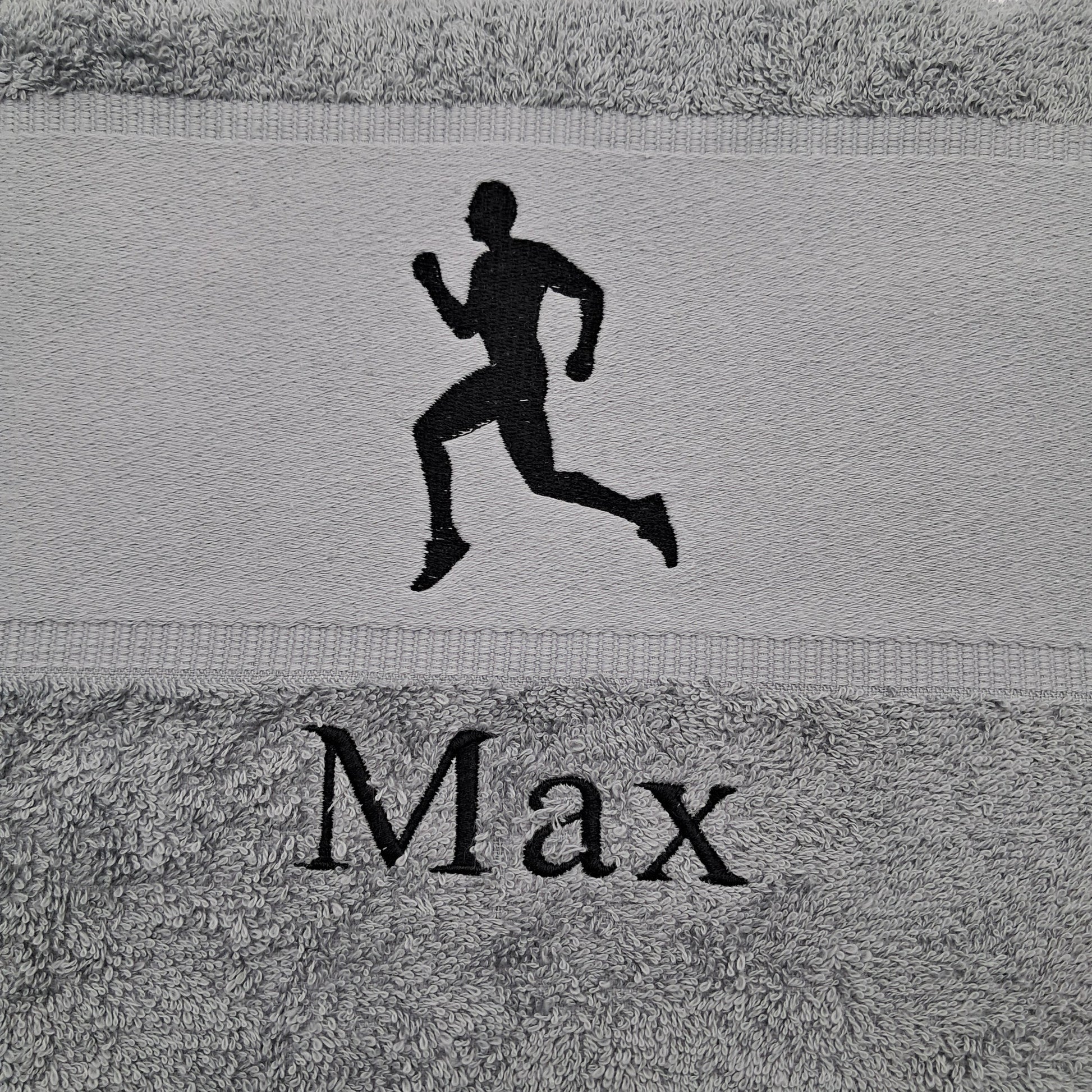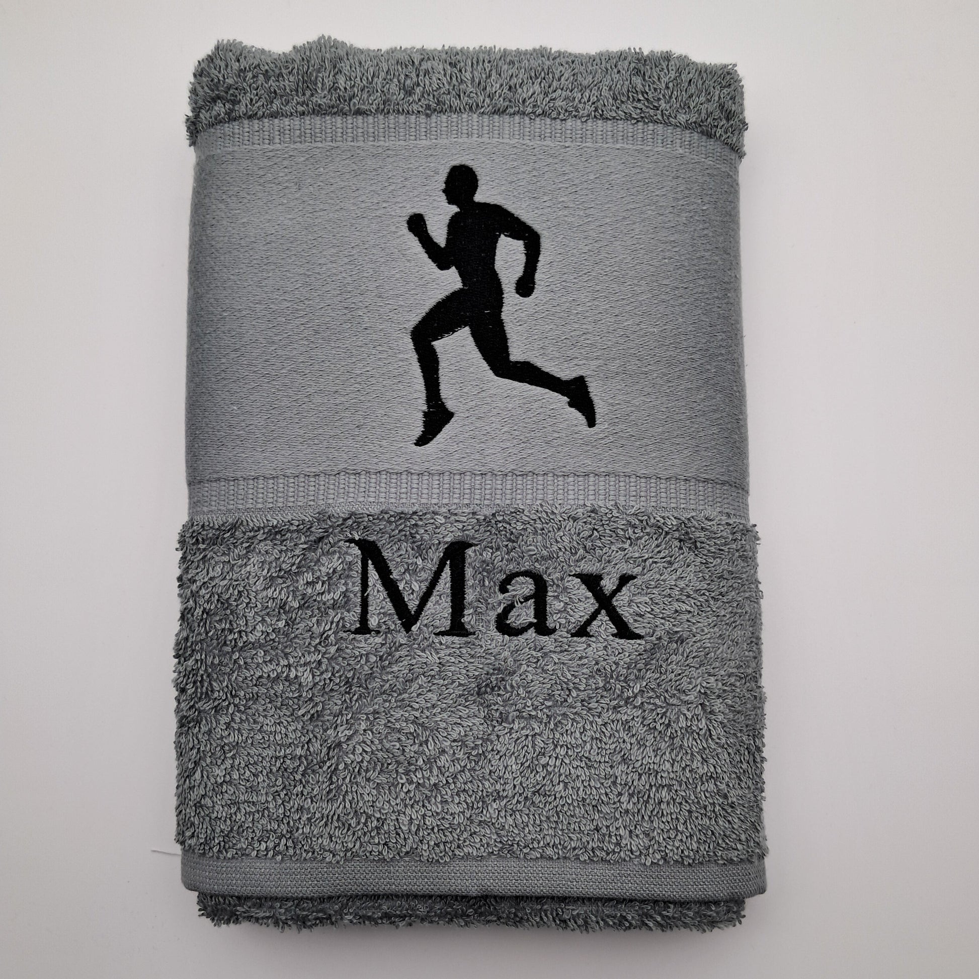 Dieses hochwertige Sport-Handtuch überzeugt mit einem dynamischen Läufer-Motiv und einer individuellen Namenstickerei. Aus weicher, saugstarker Baumwolle gefertigt, ist es der perfekte Begleiter fürs Fitnesstudio, zum Laufen, für das Training oder den aktiven Alltag.