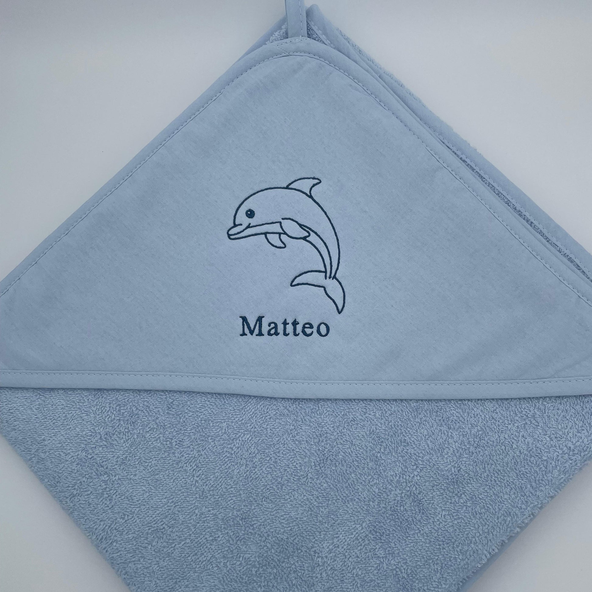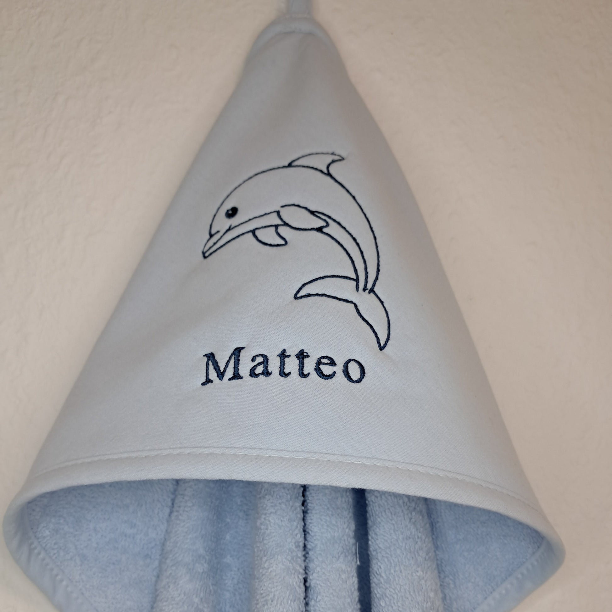 Personalisiertes Kapuzenhandtuch mit Delfin-Stickerei & Namen